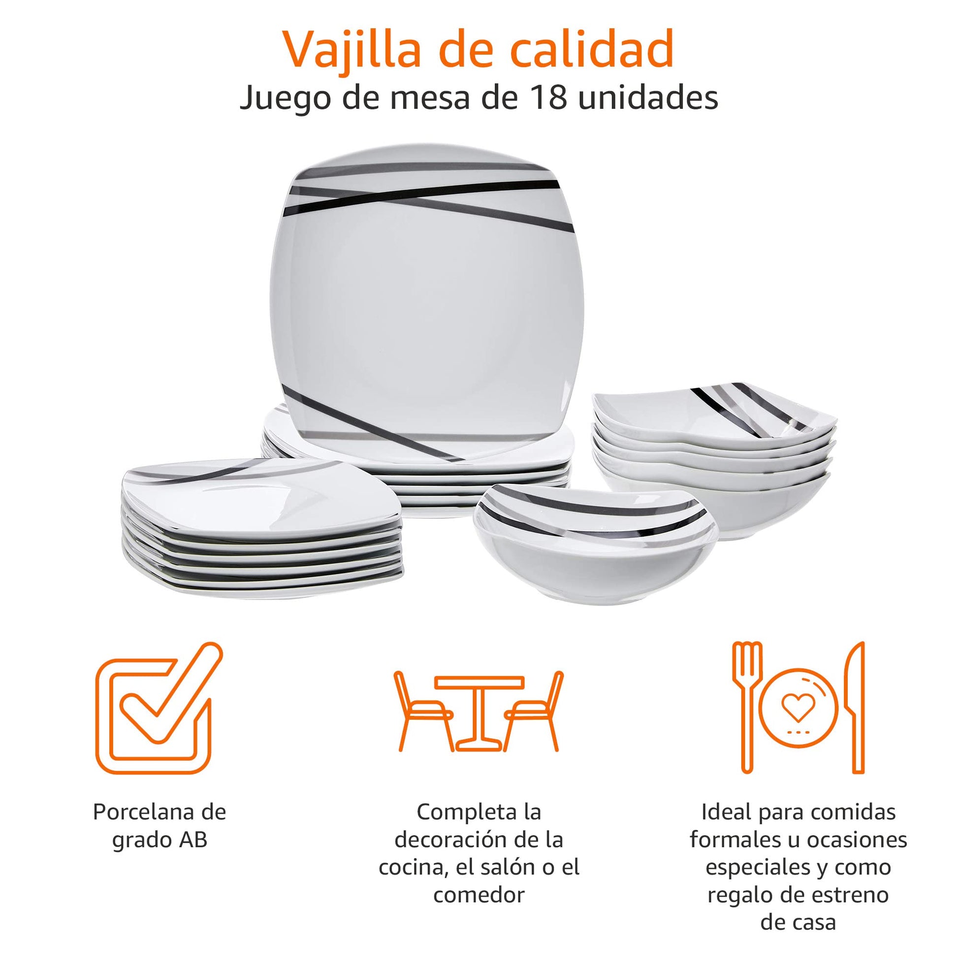 Vajilla 18 Unidades, Líneas Modernas, 6 Servicios