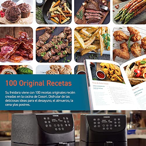Cosori Freidora de Aire 5.5L, Interior Metรกlico, Calefacciรณn Uniforme, 100 Recetas, 1700W