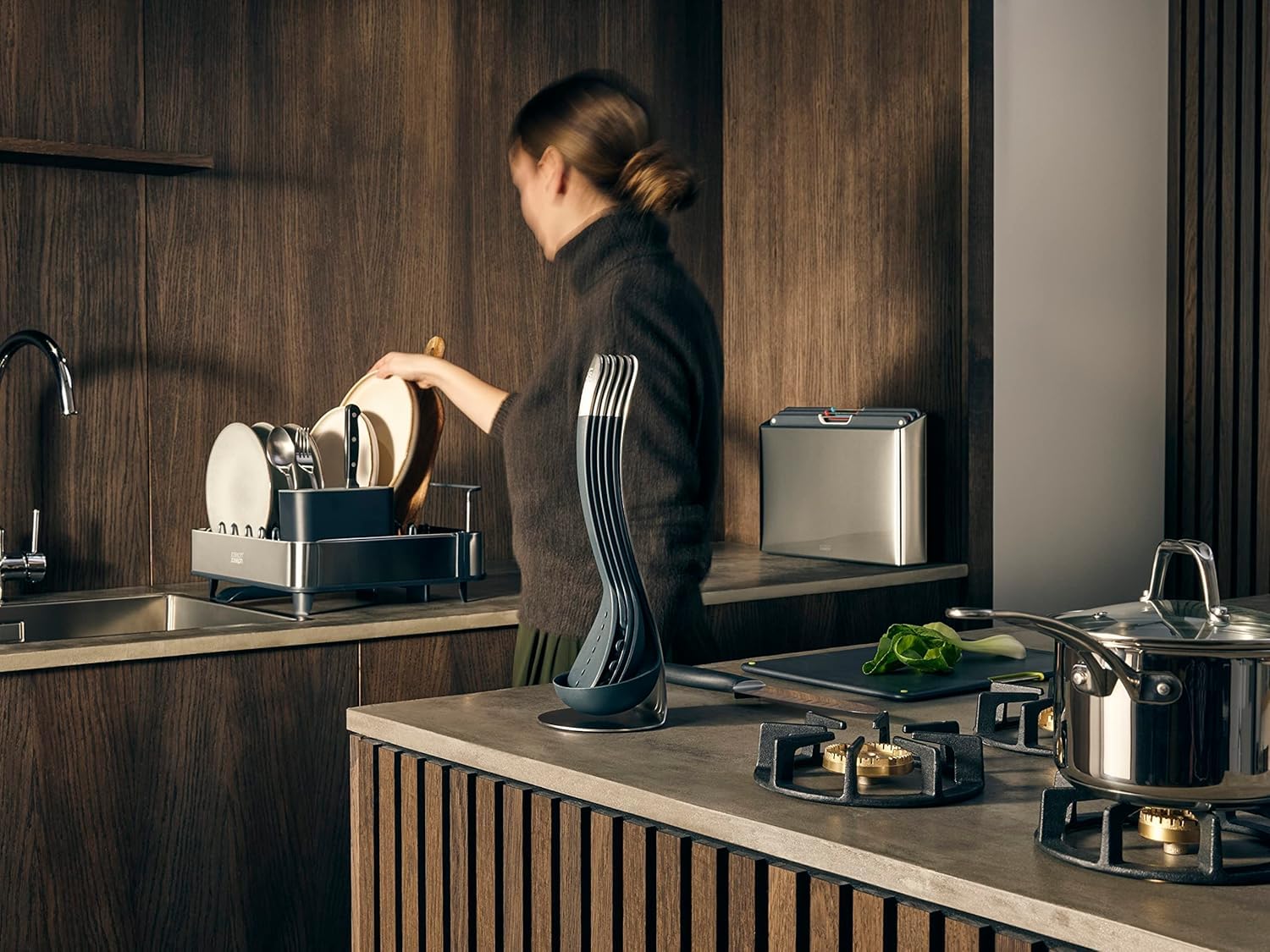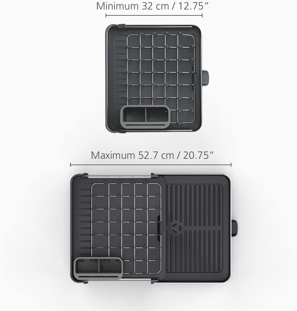 Joseph Joseph Escurridor Extensible en Acero Inoxidable, para Platos y Cubiertos, Bandeja de Drenaje Extraíble, Gris/Carbón