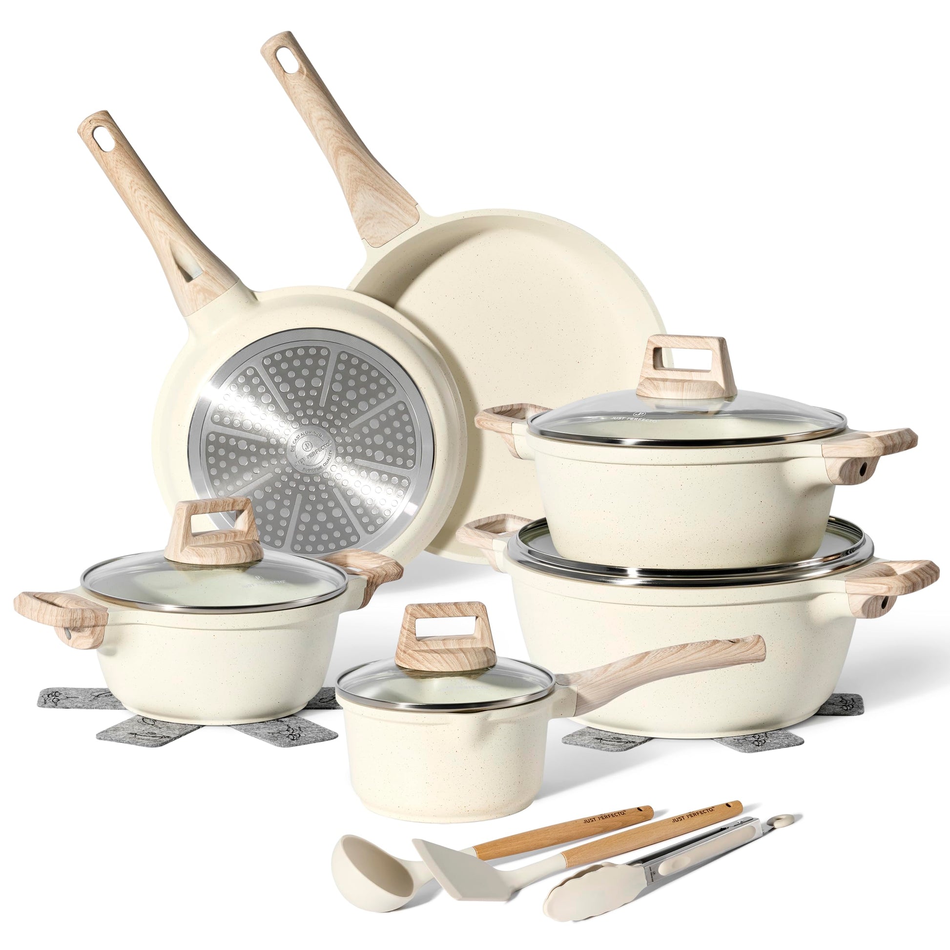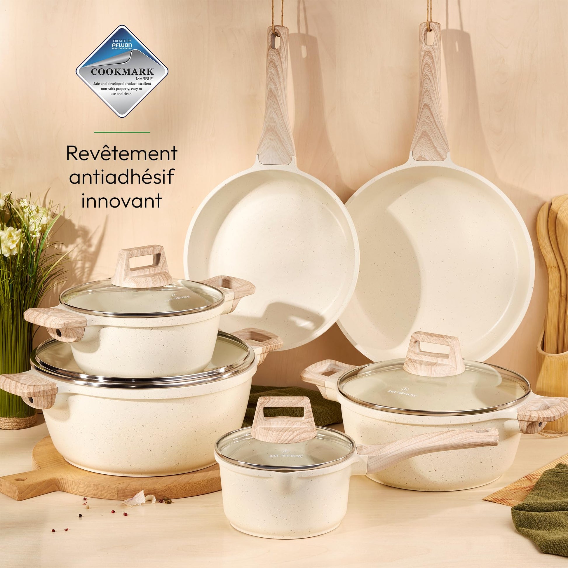 JUST PERFECTO Batería de Cocina 15 Piezas, Inducción, Antiadherente, Libre de PTFE/PFOA, Beige