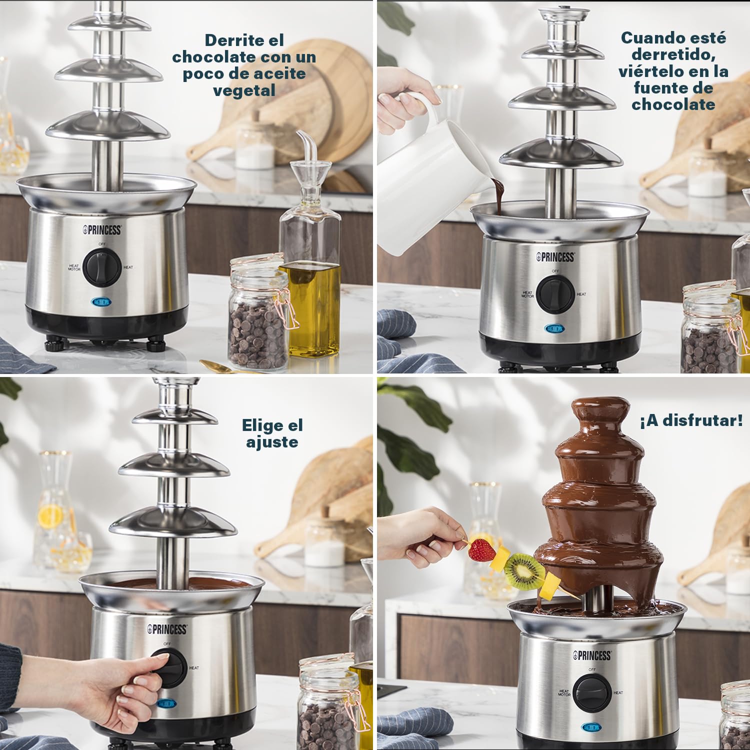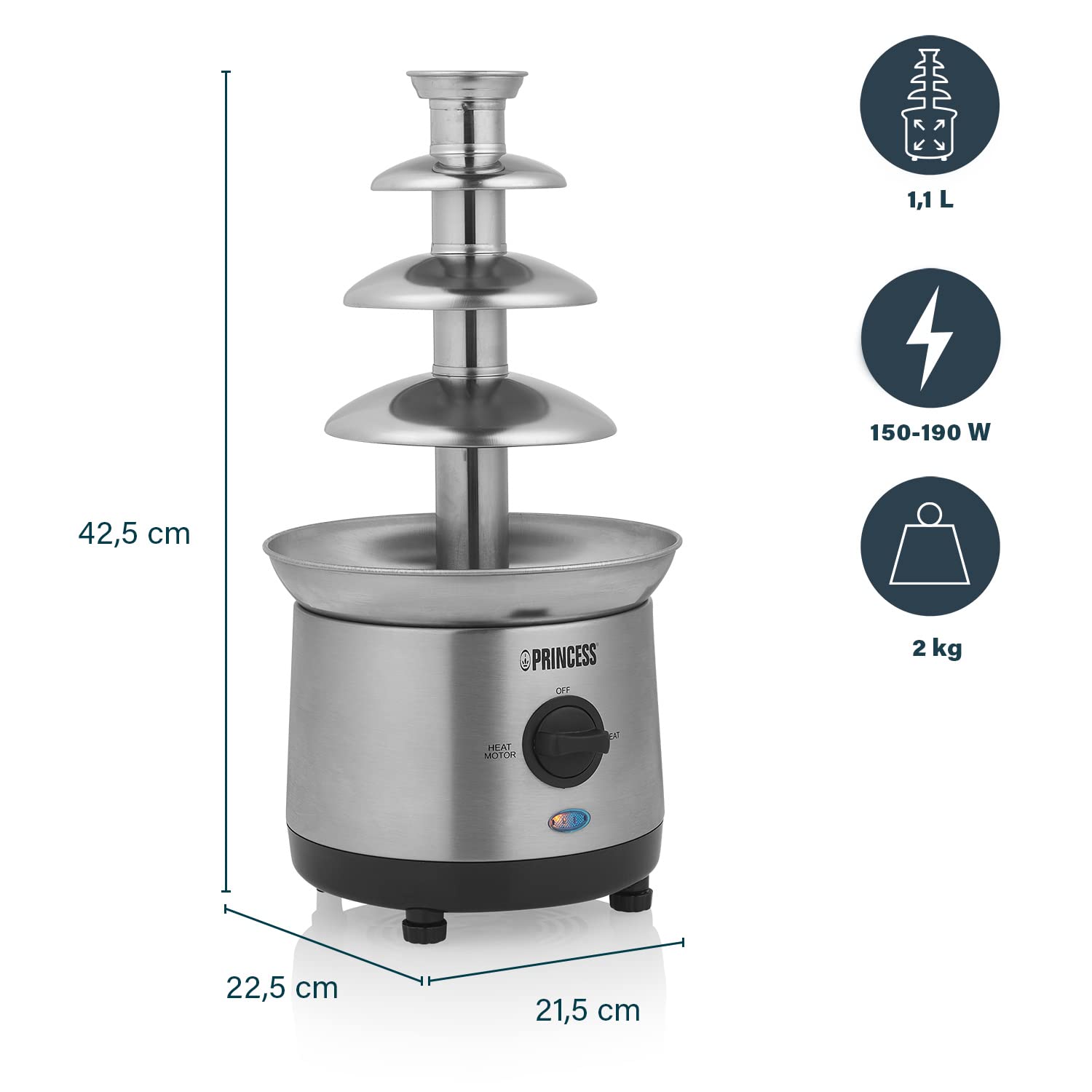 Princess Fuente de Chocolate XXL, 1.1 Litros, 4 Alturas, Acero Inoxidable, 190 W