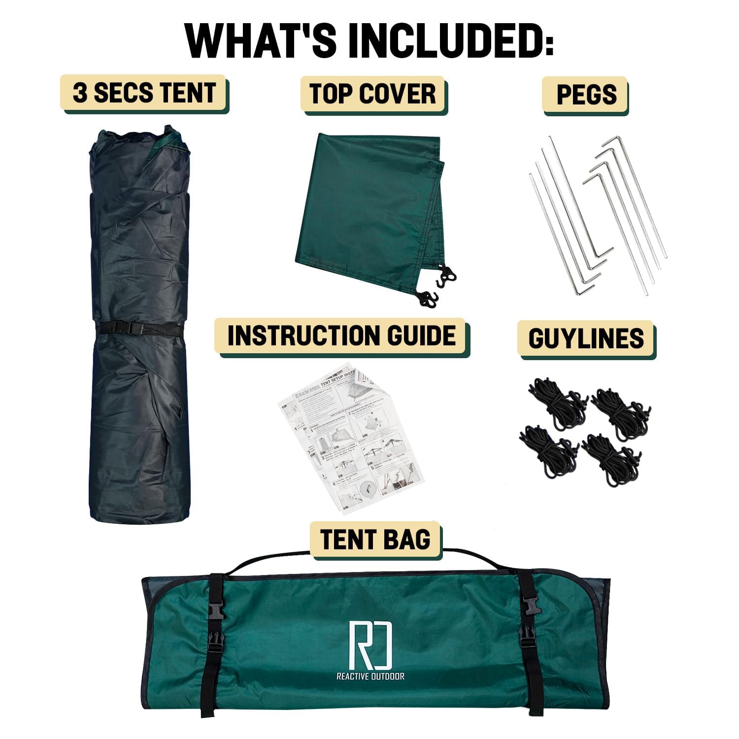- Configuración para 1 persona en segundos. Es tan rápido y fácil que puedes hacerlo todo tú mismo. No más pedirle a alguien que enhebre y sostenga los postes de la tienda por ti, o tener configuraciones largas y estresantes.