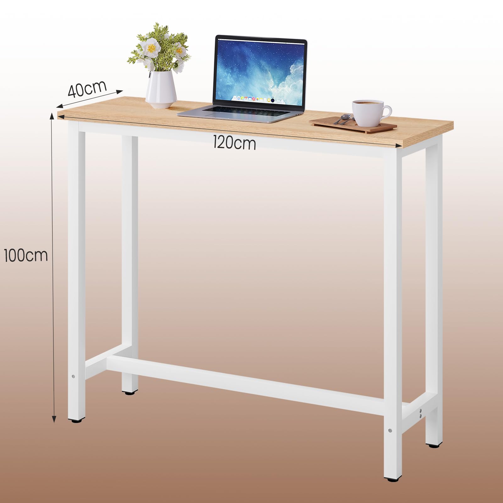 - VERSÁTIL PARA ESPACIOS PEQUEÑOS: Ideal para balcones, apartamentos, estudios o dormitorios. Esta mesa rectangular se transforma en una mesa de barra de desayuno, un bar doméstico, una consola de entrada o incluso un escritorio de pie. Su diseño minimalista combina a la perfección con cualquier decoración, sin renunciar al estilo
