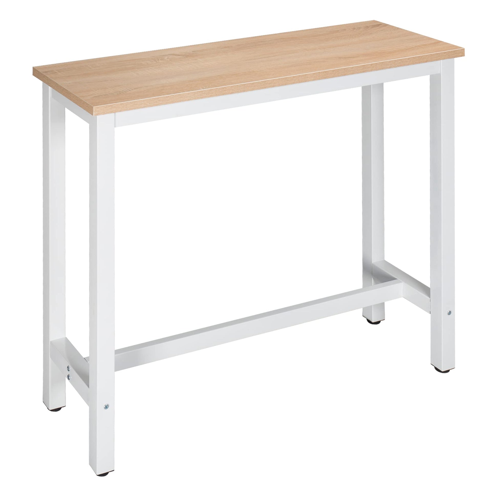 - MESA DE BAR ESTRECHA PARA AHORRAR ESPACIO: Con una medida de 120x40 cm y una altura de 100 cm, esta estrecha mesa de bar tiene capacidad para 4 ó 6 personas, ¡sin codos apretados! Combina perfectamente con taburetes de bar estándar, mientras que el generoso espacio por debajo permite que los taburetes se guarden perfectamente para ahorrar un valioso espacio