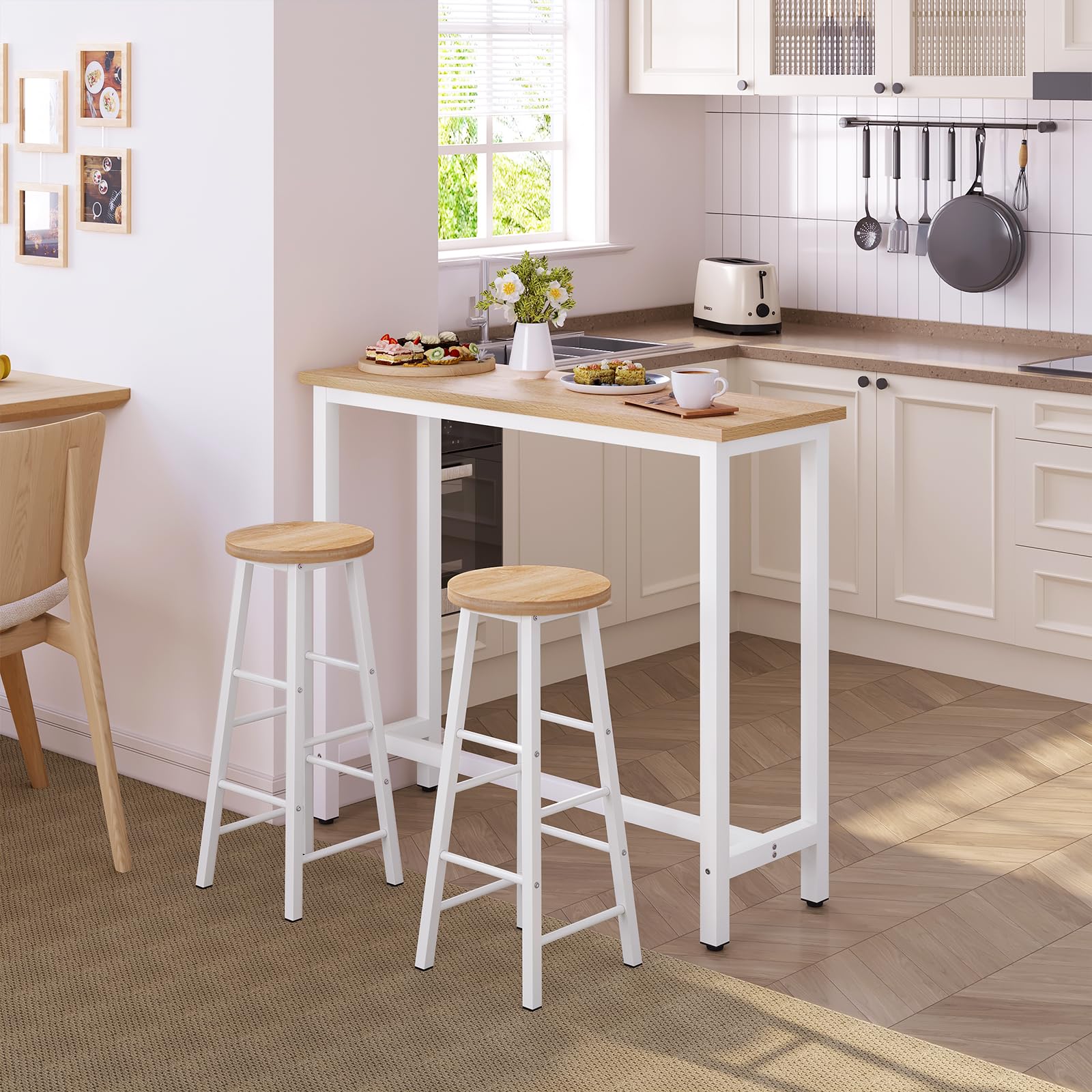 - DURADERA: Hecha de madera de ingeniería superior y un marco de metal de alta resistencia, reforzado por vigas inferiores, esta mesa de mostrador rectangular cuenta con una excelente estabilidad. Soporta hasta 100 kg, lo suficientemente resistente para desayunos, cenas, cócteles, o incluso para trabajos